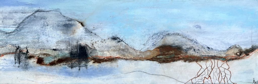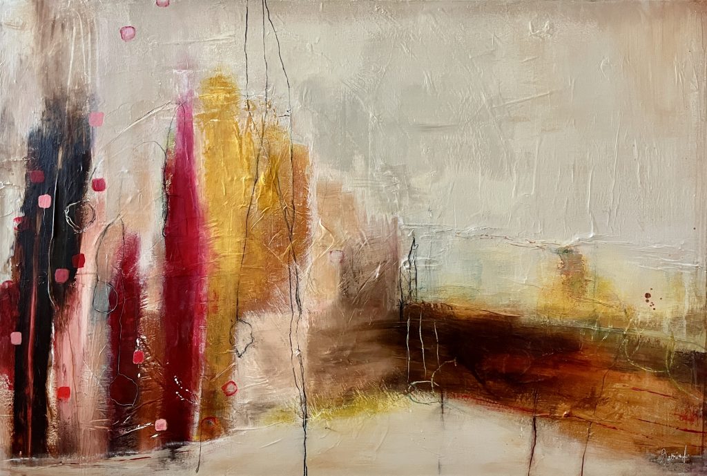 Mijn schilderijen kenmerken zich door het gebruik van verschillende materialen, gelaagdheid en vaak ook door het gebruik van lijnen als beeldelement. Ik laat mij inspireren door landschappen, natuur en door thema’s die ik graag wil verbeelden. Ik werk hoofdzakelijk abstract en soms figuratief.